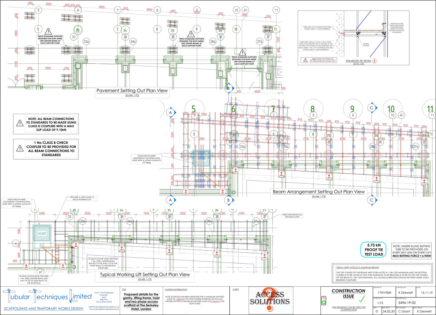 Tubular Techniques were engaged to produce the complicated front elevation scaffold which included a heavy-duty loading gantry double width wedge shaped access scaffold and hoist support and enclosure with numerous adaptions and additional scaffold sections along the way as the project progressed.