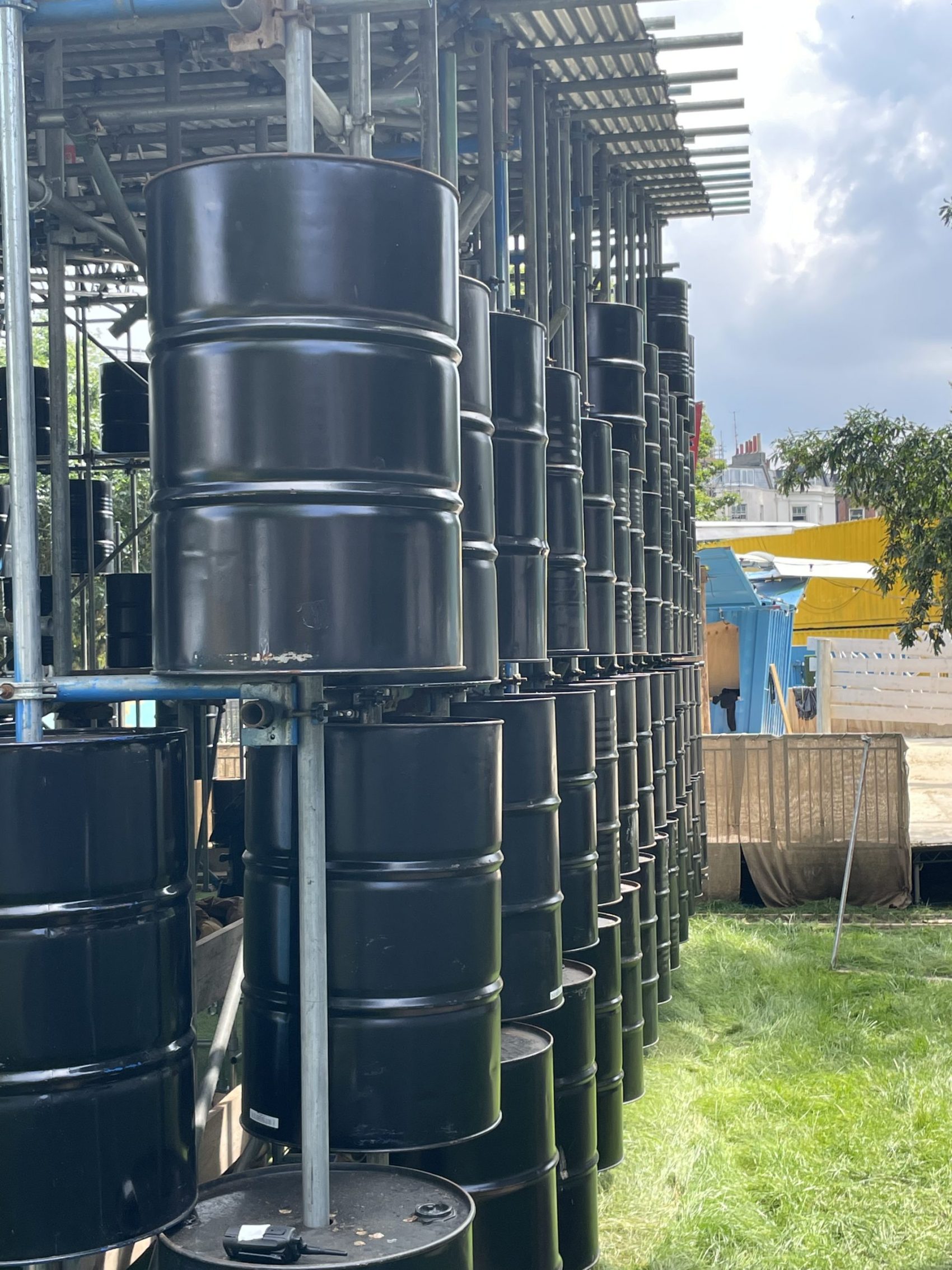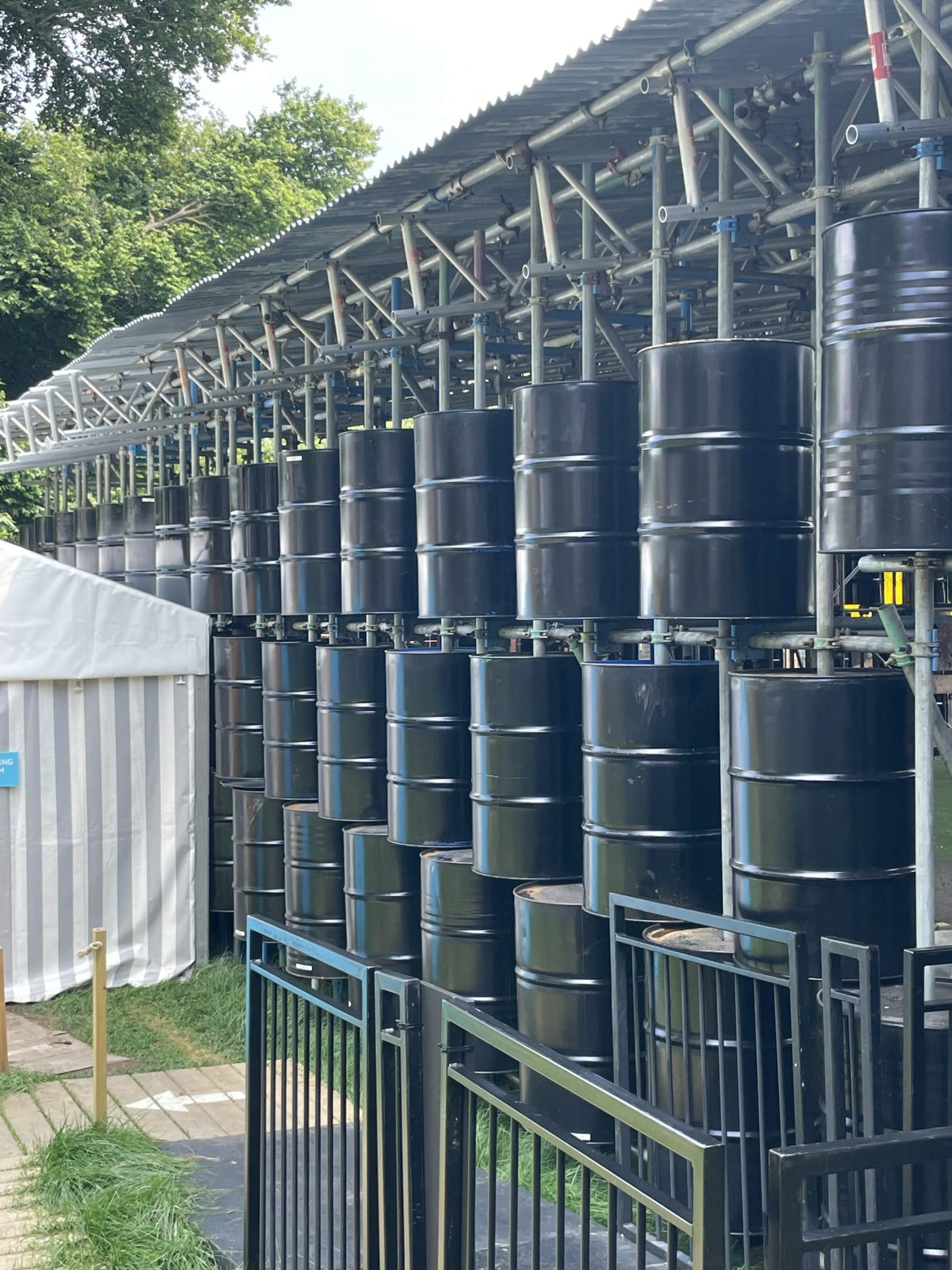 Tubular Techniques Were contracted to design the two temporary roof scaffold one at “Warren on the Beach” and another at “The Warren” near to the old Steine that will an integral part of the festival providing a covered seating are and stage for the live performances the designs are unusual as they incorporate empty oil drums within the supporting scaffolds to form the walls of the structure to give an overall industrial feel to the project , overall a fun project to be involved in.